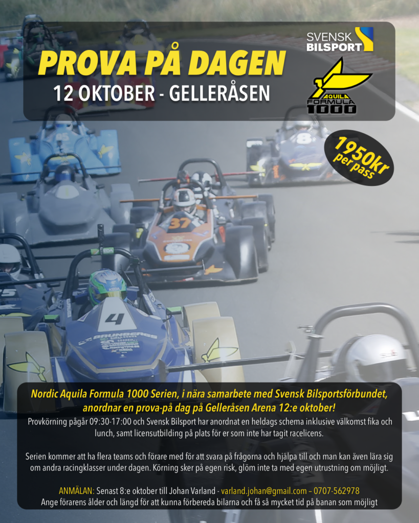 Together with The Swedish Autosport Federation, The Nordic Formula 1000 Series is putting on an open youth test day to allow new up and coming talents to try out the car in a controlled environment. It all goes down on Sunday, October 12th, and is a fantastic opportunity to get to know the people and the car to take that next step after karting!